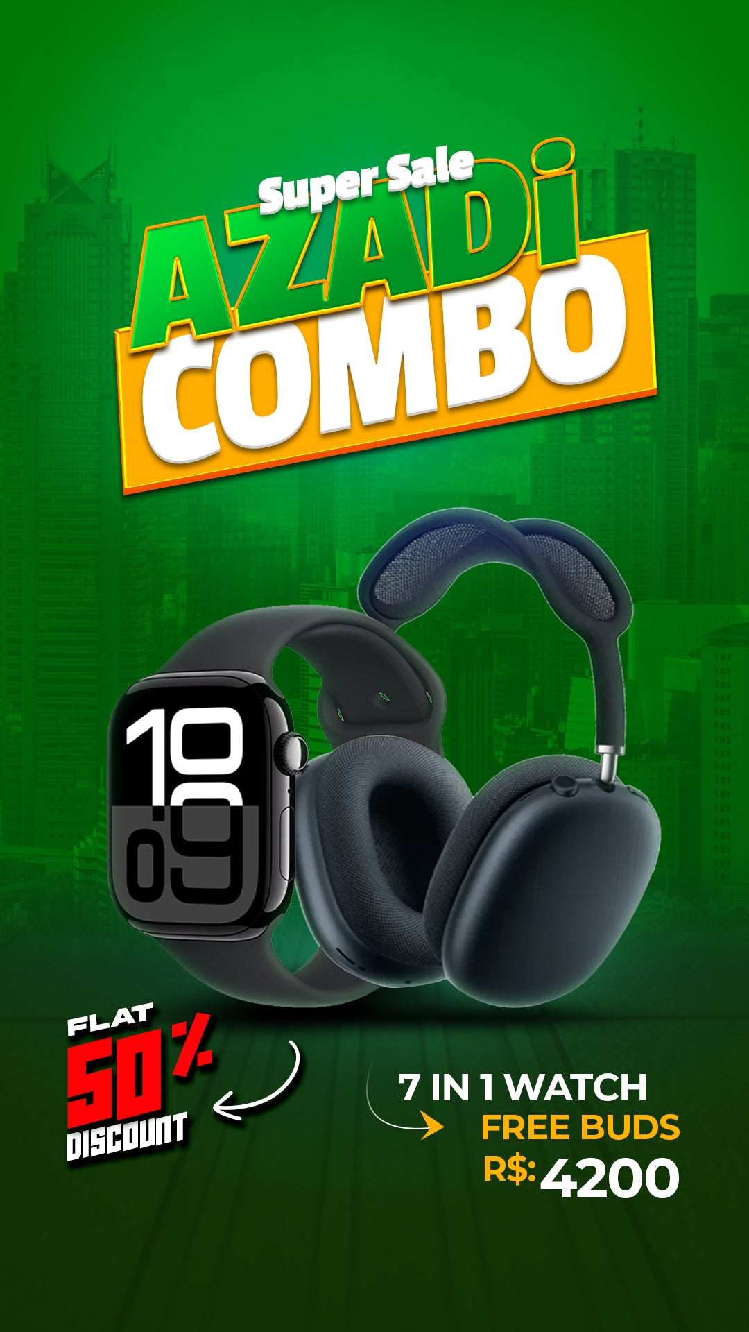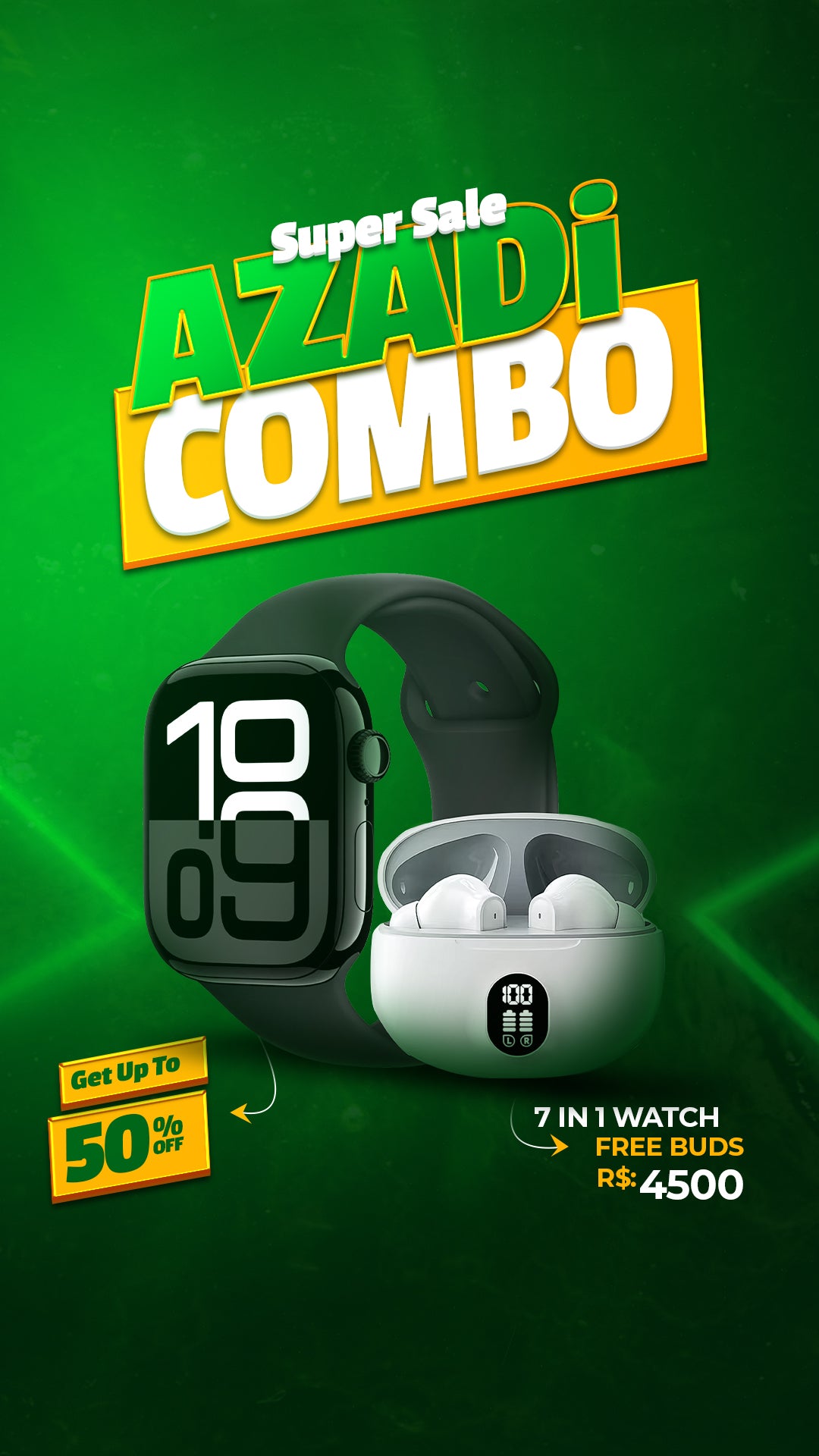 Azadi Max Deal Smartwatch & Wireless Headphones – Premium Tech Combo The Perfect Fusion of...